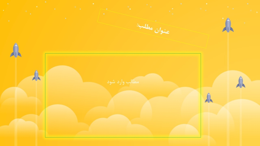 استفاده از الگوهای جذاب و مهیج در اسلایدهای پاورپوینت طراحی شده، باعث ایجاد نشاط و شادابی مخاطبان حاضر در جلسه ارائه، خواهد شد. عزیزان همراه همیشگی گروه تخصصی اسنپ پاورپوینت؛ با قالب پاورپوینت رایگان و سرگرم کننده موشک در حال صعود؛ لبخند را بر لب مخاطبان خود، بنشانید. شما عزیزان؛ میتوانید با استفاده از اسلایدهای این قالب حرفهای، به پاورپوینت طراحی شده خودتان، جلوهای تازه و شاداب دهید. شما میتوانید؛ هم رنگ آسمان و هم رنگ موشک را، تغییر دهید. همه چیز در این قالب فوق العاده و رایگان، قابل ویرایش است! مطمئناً میتوان از این قالب زیبا، برای صحبت در مورد اکتشافات فضایی استفاده کرد. اما موشکها نیز؛ استعارهای هستند که اغلب مدیران میتوانند، برای توضیحات مربوط به نوآوری، شرکتهای نوپا و رشد تجاری سازمان تحت مدیریت خود، استفاده نمایند. دانشجویان عزیز محصل در دانشگاههای سراسر کشور در تمامی رشتهها؛ نیز میتواند از این قالب رایگان پاورپوینت، در ارائههای کلاسی خود استفاده کرده و این به عنوان نقطه عطفی در جهت موفقیت هر چه بیشتر آنها، در مسیر یادگیری و آموزش باشد.