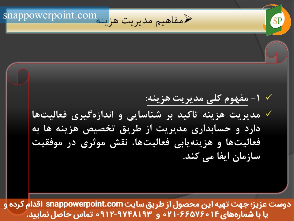 | *** *** *** | عنوان محصول: پاورپوینت آماده سیستم مدیریت هزینه نکته مهم: |