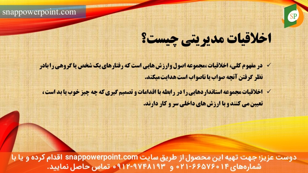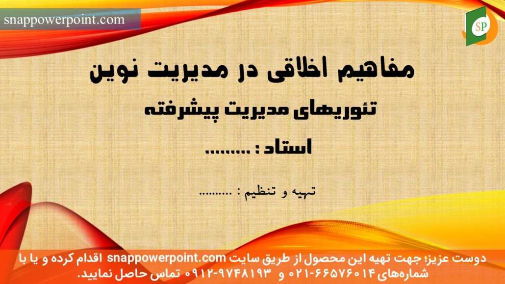 پاورپوینت آماده مفاهیم اخلاقی در مدیریت نوین