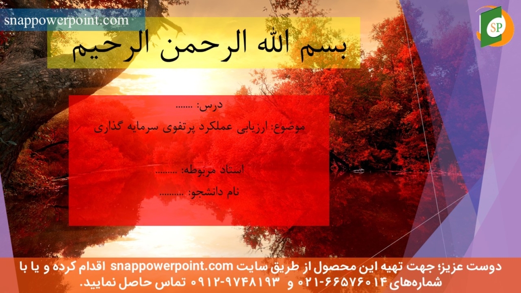 | *** *** *** | عنوان محصول: پاورپوینت آماده ارزیابی عملکرد پرتفوی سرمایه گذاری نکته مهم: |