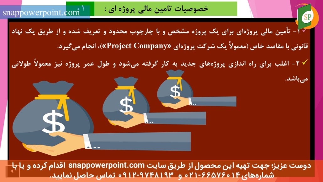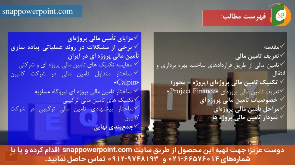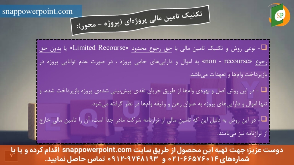 پاورپوینت آماده بررسی انواع تکنیکها، ابزارها و مراحل اجرای تامین مالی پروژهای: