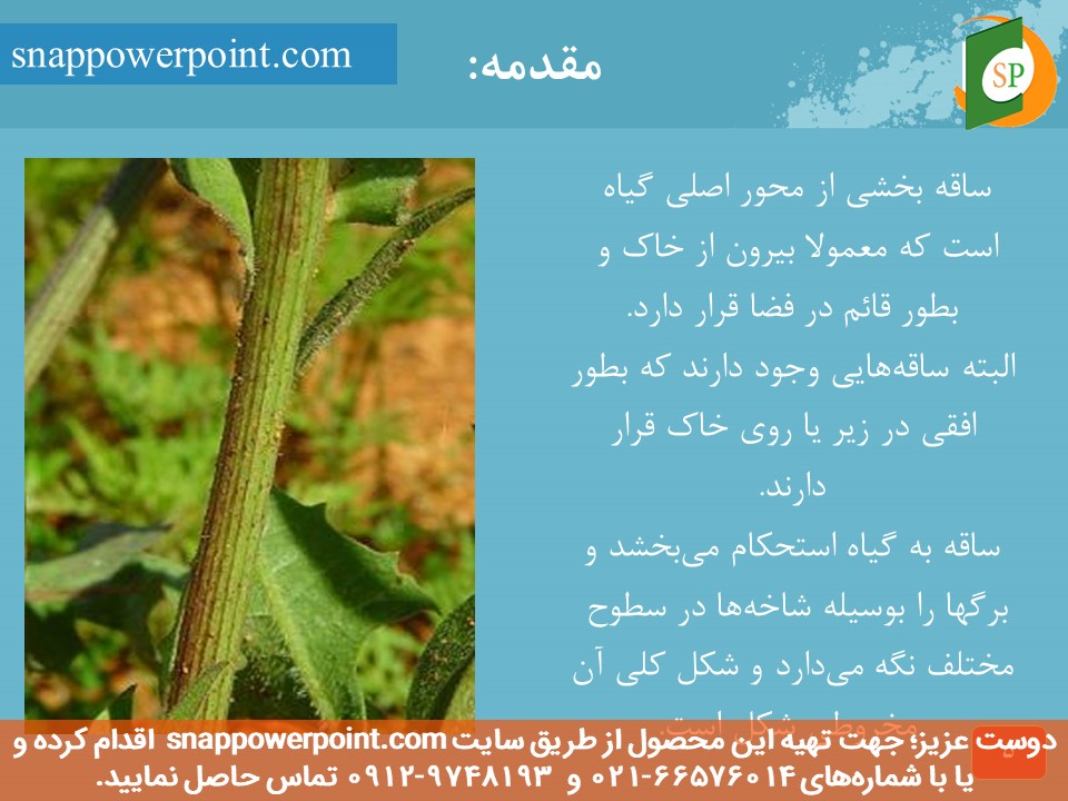 | *** *** *** | عنوان محصول: پاورپوینت آماده نقش ساقه و انواع آن نکته مهم: |