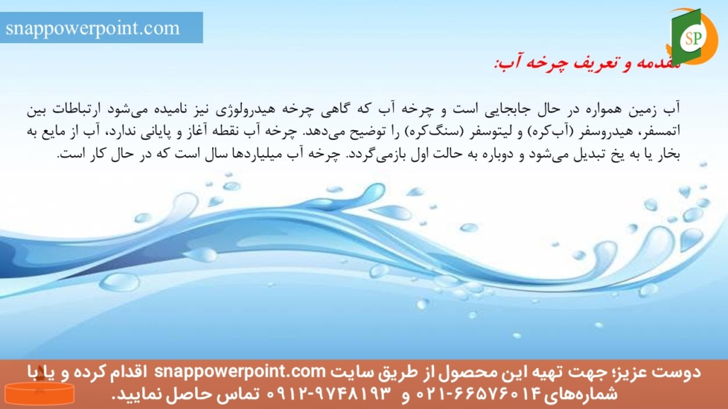 | *** *** *** | عنوان محصول: پاورپوینت آماده چرخه آب نکته مهم: |