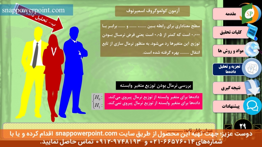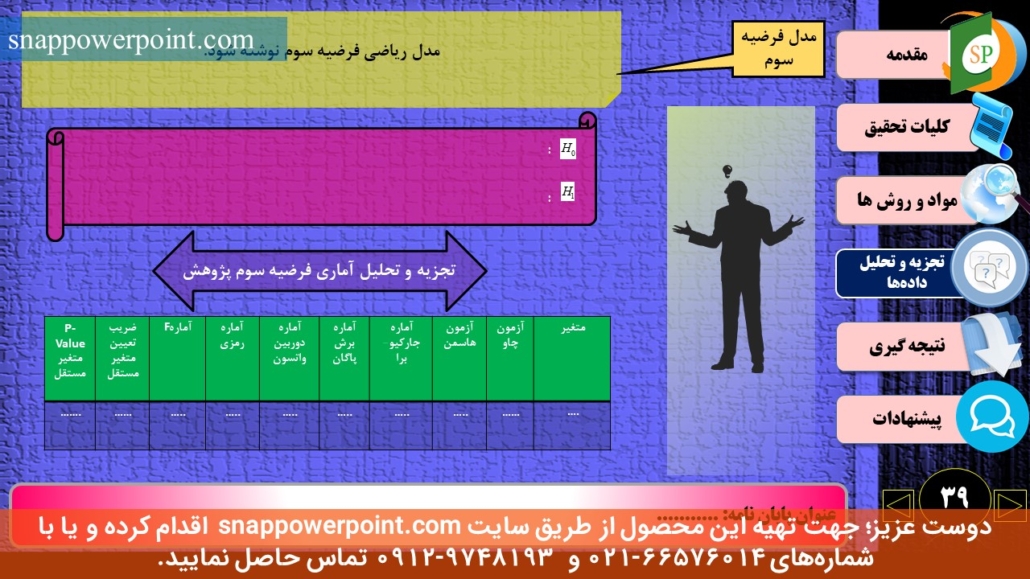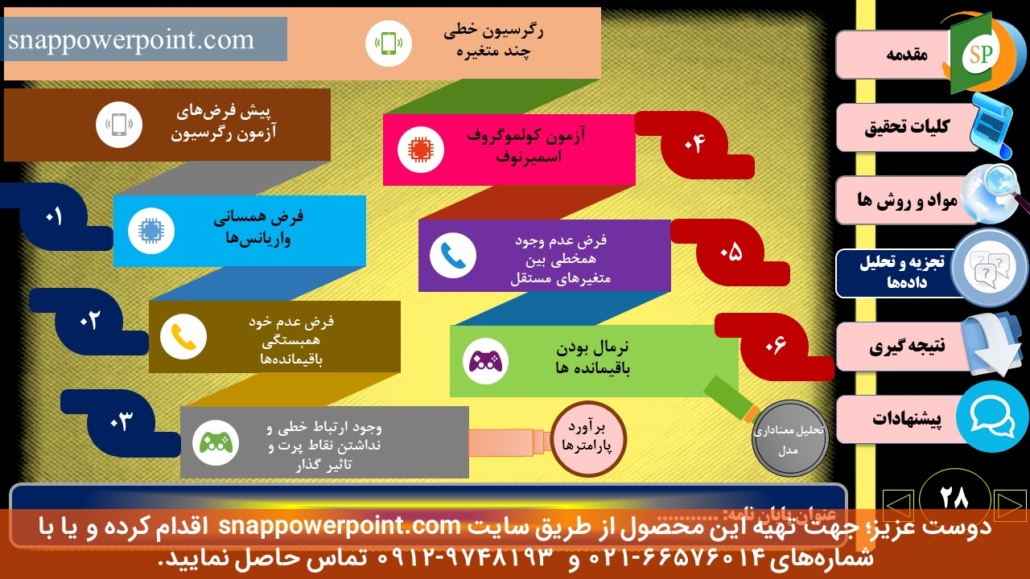 تجزیه و تحلیل آماری فرضیههای پایاننامه به ترتیب شماره