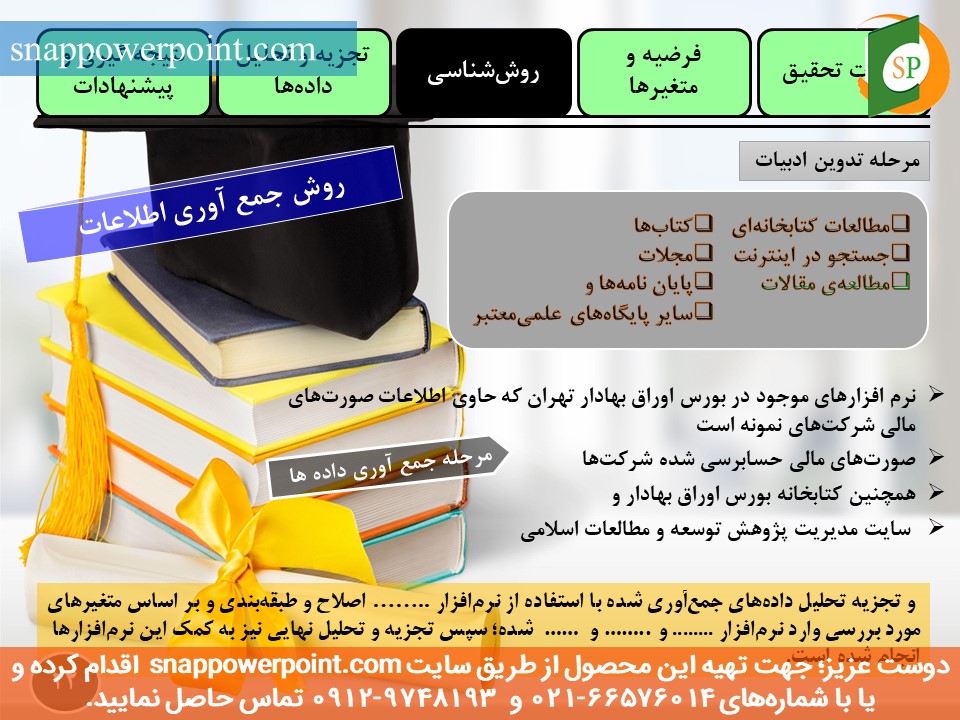 دانشجویان مقطع کارشناسی ارشد و دکتری رشته حسابداری مدیریت؛ که به مرحله دفاع از پایان نامه خودشون رسیدند، همواره در تلاش هستند که؛ حاصل اندوختههای دانش خود را، به بهترین نحو ممکن به نمایش بگذارند. با توجه به این که؛ رشته حسابداری مدیریت، از تلفیق مباحث دو رشته حسابداری و مدیریت به وجود آمده، بنابراین دانشجویان محصل در این رشته، به اجبار باید هم تسلط بر روی استانداردهای حسابداری و حسابرسی داشته و هم تسلط بر روی تکنیکهای مدیریتی داشته باشند. دانش حسابداری مدیریت؛ به نوعی پروش دهنده مدیران بسیار خلاق و با استعداد، در زمینه مدیریت سازمانها و شرکتها میباشد. مدیرانی به موفقیتهای بسیار بزرگ و درخشنده، در زندگی کاری خود خواهند رسید که؛ بر مباحث مالی مسلط بوده و بتوانند تجزیه و تحلیلهای سریع و آسانی، بر روی صورتهای مالی داشته باشند. خب مسلماﹰ؛ دانشجویانی که با الگوهای فکری بسیار درخشان، در این رشته تحصیل کرده و در حال حاضر به مرحله پایان نامه خودشون رسیدند، در اولین مرحله آزمایش خود، باید بسیار توانمند و عالی، جلسه دفاع خودشون را مدیریت نمایند. قالب پاورپوینت آماده پایاننامه حسابداری مدیریت – طرح شماره ۴، یک قالب پاورپوینت حرفهای هستش که؛ برای این دسته از دانشجویان طاحی و آماده شده است. این قالب حرفهای با طراحی بسیار جذاب و شیرین، دارای بخشهای متنوع زیر میباشد: