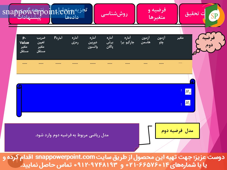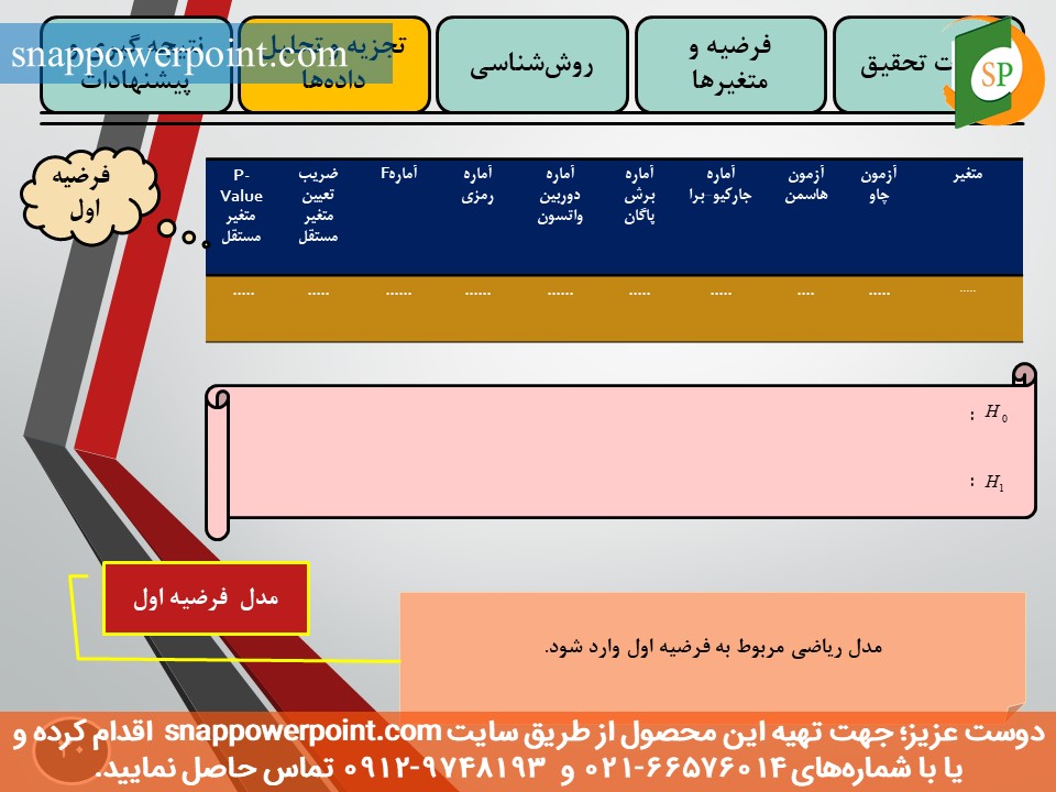 توضیحات روشهای آماری مورد استفاده برای فرضیههای پایاننامه